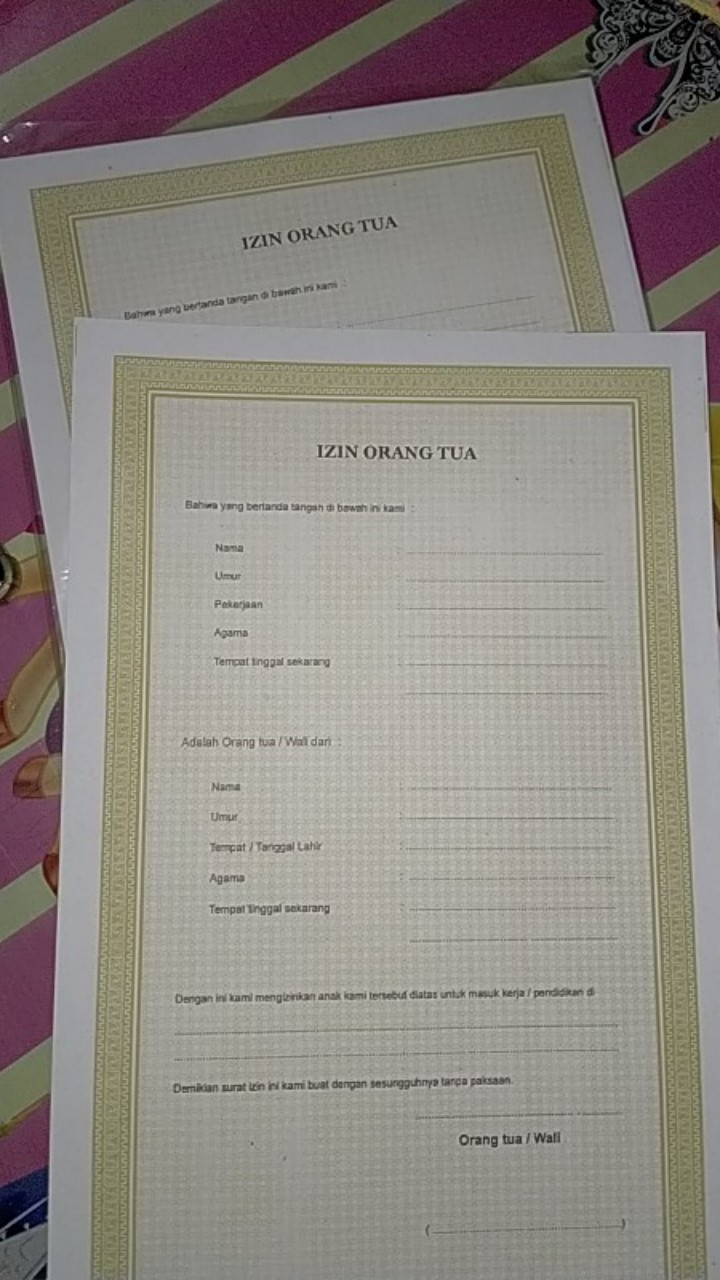 Contoh surat pernyataan orang tua untuk bekerja di luar negeri. Nah, bagi anda yang saat ini membutuhkan surat tersebut, dan tidak tahu cara membuatnya, kali ini kami akan bagikan contoh surat izin orang jalin komunikasi dengan headhunter. Namun mungkin masih banyak orang yang tidak begitu mengerti cara menulis surat izin yang baik dan benar. Secara umum surat izin orang tua sama seperti surat pernyataan, yang tujuannya memberikan persetujuan dengan ini menyatakan bahwa saya memberikan izin putri saya untuk bekerja pada perusahaan yang bapak/ibu pimpin termasuk ditempatkan di cabang baik di dalam maupun luar negeri. Berikut ini cara menulis surat izin dan juga contoh surat izin tidak masuk sekolah, tidak masuk kuliah, tidak masuk kerja, surat izin dari orang tua dll. Yang bertanda tangan di bawah ini demikian penjelasan mengenai contoh surat izin orang tua, jika kalian ingin membuat surat izin lainnya, kalian hanya mengganti inti atau maksud dari surat izin tersebut. Pasti acara belajar ke sekolah jadi batal kan. Contoh surat izin tidak masuk kuliah. Di jaman serba digital sekarang ini, cobalah manfaatkan media sosial untuk mencari informasi lowongan pekerjaan. Contoh surat izin adalah sebuah surat yang dibuat dengan tujuan untuk meminta izin kepada penerima karena surat izin biasanya dibuat oleh orang yang dimintakan izin. Selain itu perubahan kode model n4 yang dipergunakan sebagai form surat izin orang tua versi menggunakan kertas model ukuran f4 alias folio dengan lebar 21,59 cm dan tinggi 33 cm. Jangan khawatir, kamu bisa melihat contoh dan struktur penulisannya pada artikel ini! Dalam beberapa kasus, surat izin orang tua kadang juga diperlukan ketika ingin mendaftar kerja di bank tertentu.